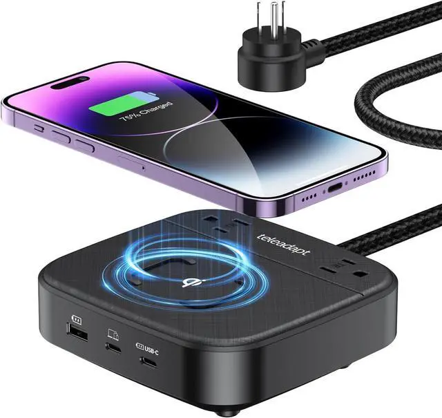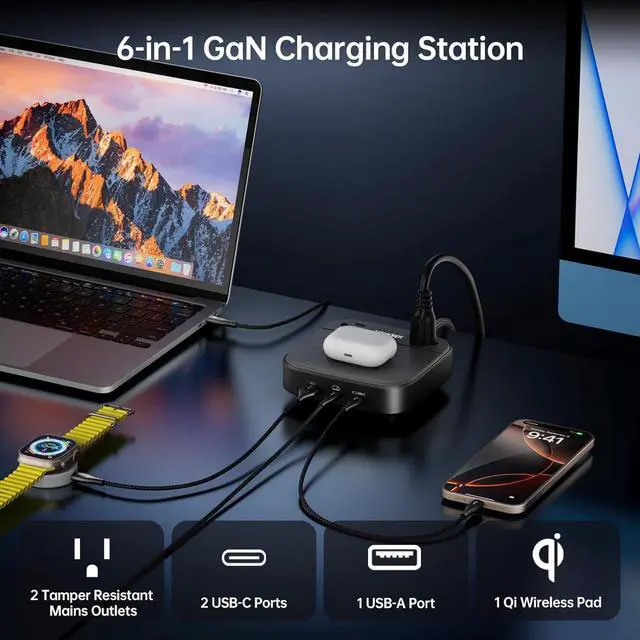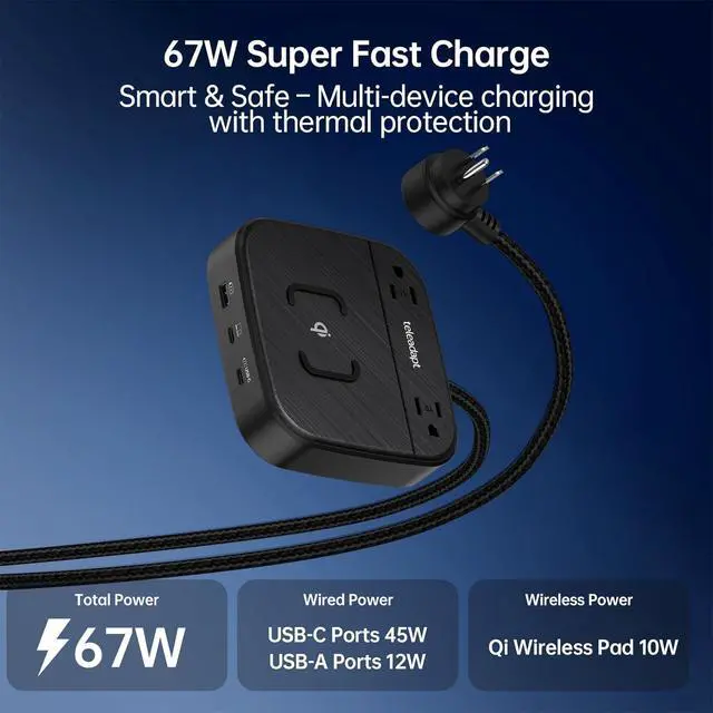 NEMA 5-15P Certified \ Safe & ReliableThis usb c charging station Child-safe, tamper-resistant (TR), mains outlets are equipped with shutters that prevent the insertion of keys and other potential shock hazards. Built with flame-retardant materials and scratch-resistant casing for durability. The anti-slip base ensures stability on any surface, offering worry-free protection for home/office use.