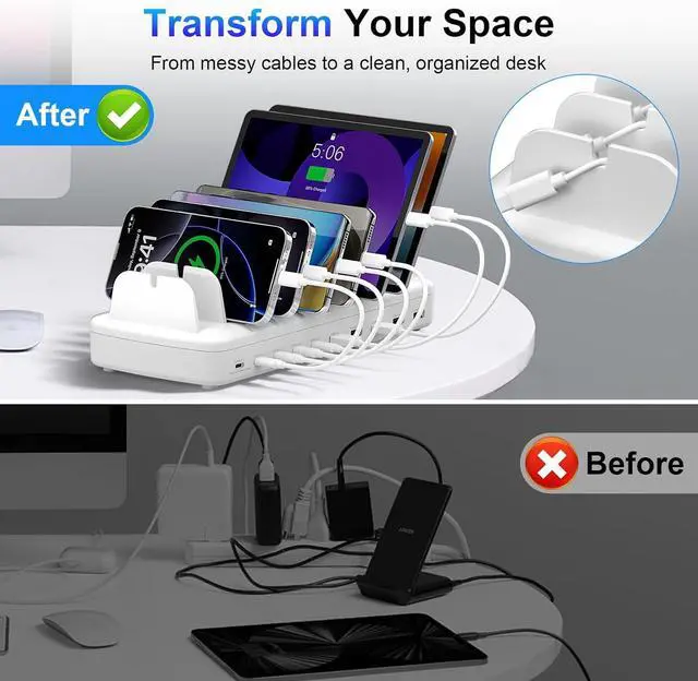Cables & Wide Compatibility: Comes with 8 short mixed cables (3 iPhone/iPad, 3 Type-C, 1 USB-C, 1 Micro USB). Perfect for phones, tablets, laptops, watches, and other USB devices