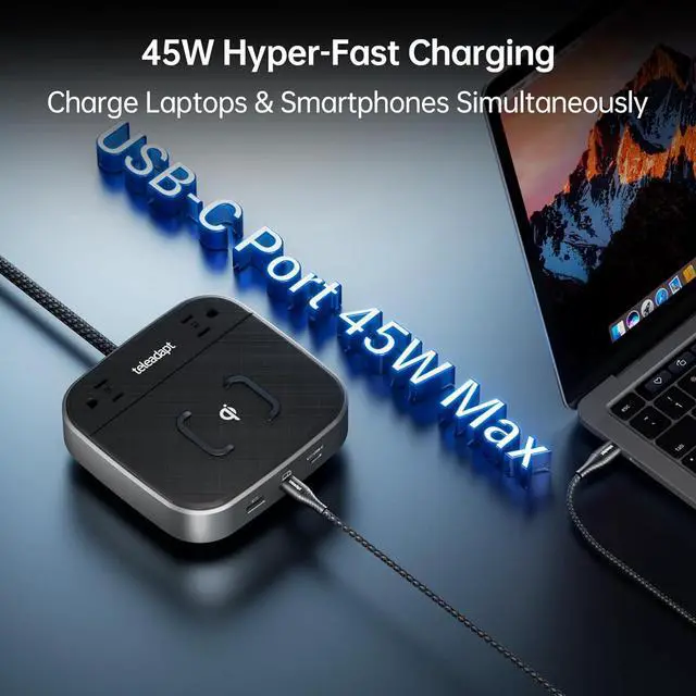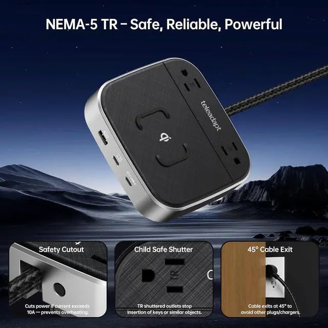 NEMA 5-15P Certified \ Safe & ReliableThis usb c charging station Child-safe, tamper-resistant (TR), mains outlets are equipped with shutters that prevent the insertion of keys and other potential shock hazards. Built with flame-retardant materials and scratch-resistant casing for durability. The anti-slip base ensures stability on any surface, offering worry-free protection for home/office use.