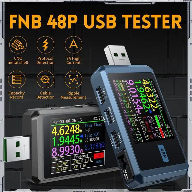 Parameter Detection and RecordingSix-digit display of voltage, current and power, the resolution is 0.00001 (V/A/W). 10 sets of switchable capacity, power and time statistics. 1 set of voltage and current curve records