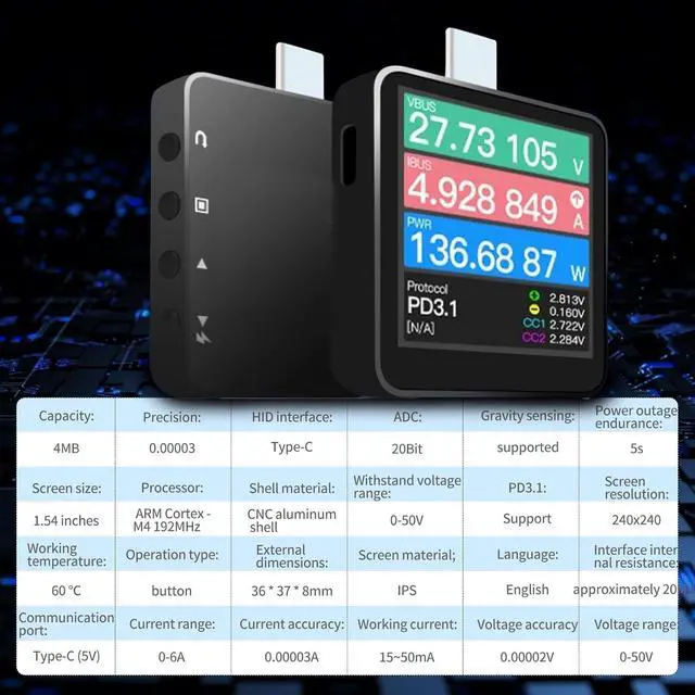 More Powerful: This tester integrates ARM Cortex-M4 processor and 20 bit ADC. It can support up to 50V 6A (240W in PD) and USB PD protocol analyzer. The PC software can obtain 10 million pieces of data at a time.