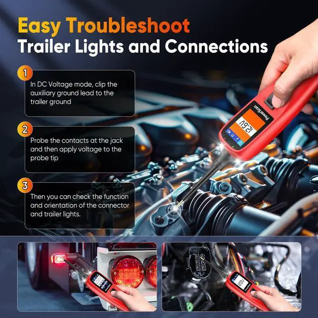 Activating Components PowerScan auto circuit tracer kit can activate components in vehicle, in hands, and with ground, satisfying all the working scenarios. circuit tester can generate activation signals to the tested components, such as activating lights, motors fans, wipers and other on-board electric equipment. circuit probe kit can also find bad ground contacts, by observing the response of the LED lights, you can tell whether it's true ground.