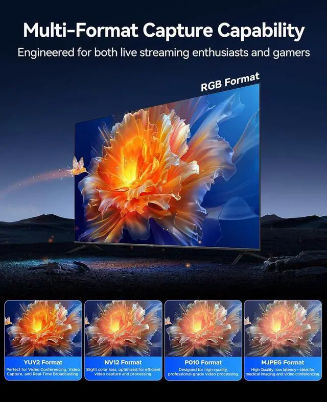 All Scenarios: Supports formats like NV12, YUY2, RGB24, and morebalancing image quality, color accuracy, and stability for everything from casual entertainment to professional video production.
