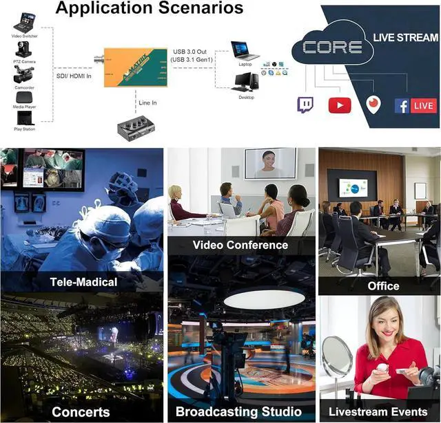 Fit all livestreamSupport live video streaming, Webcasting, video conferencing, church livestream, Personal Live Broadcast and so on. And you also can share your Gameplay, High-definition video capture, Medical video to a larger screen, or record the video you like footage directly to your hard drive without time restriction.