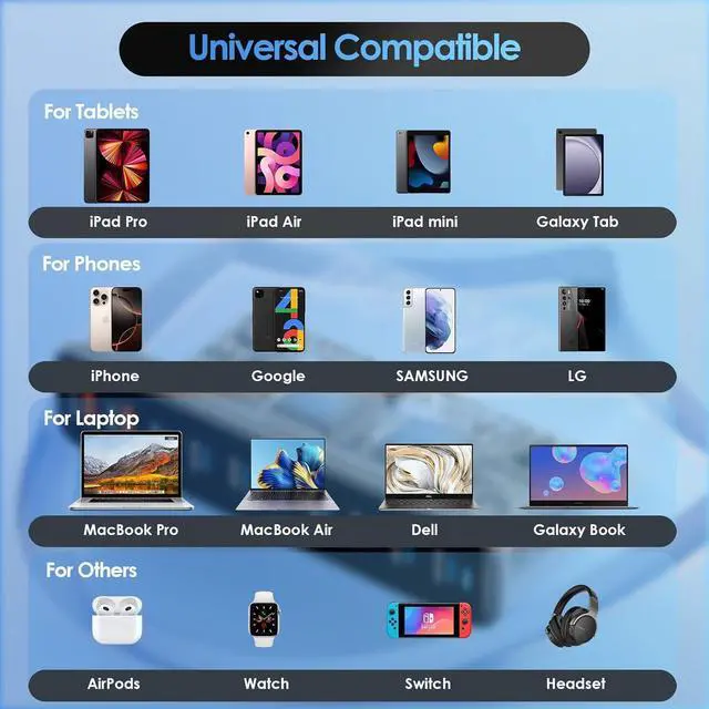[Advanced Technology Ensures Safe Use] The Chargers for Multiple Devices have built-in protection against overcurrent, overheating and overcharging of devices. Adopts high quality microchip for more efficient charging power. Adopting ABS fireproof material, it can conduct and shunt in a very short period of time, thus avoiding surge damage to other devices in the circuit, and it will automatically stop charging when the battery is full, ensuring the safety of the device and prolonging its service life.