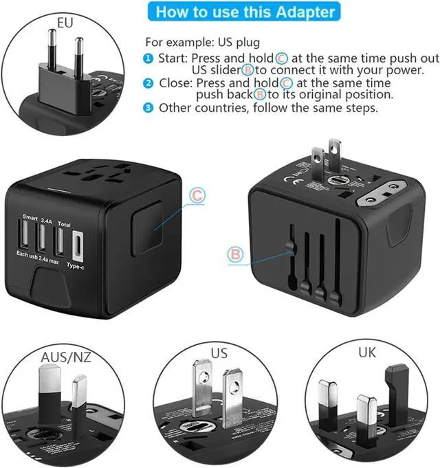 International Travel AdapterCovers over 200 countries: France, Germany, Italy, Spain, Iceland, Greece, Israel (Type C ); UK, Ireland, London, England, Scotland, Dubai (Type G); China, Australia, New Zealand (Type I); USA, Japan, Canada (Type A), More countries please check Description or Picture Part; ideal for your worldwide travel or business trip.