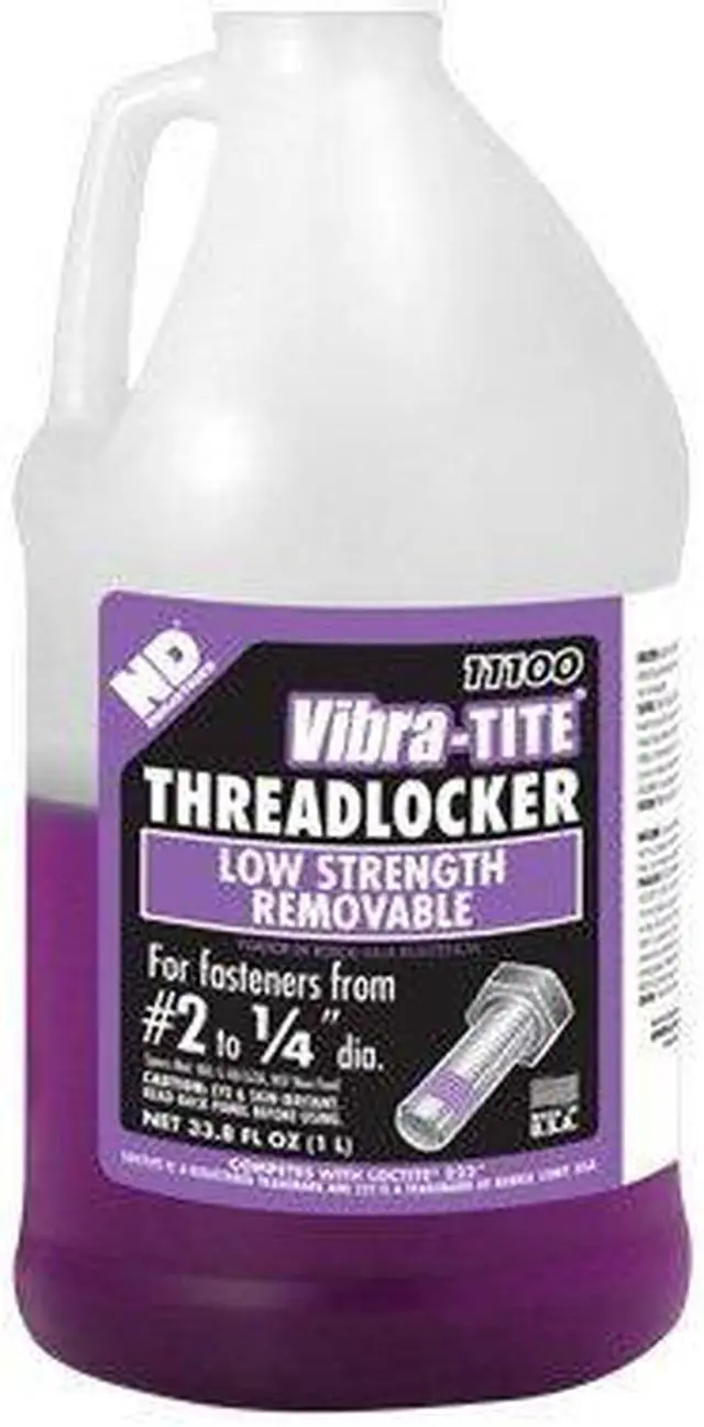 Vibra-TITE 111 Low Strength Threadlocker is a thixotropic anaerobic threadlocker designed for easy disassembly of threaded components The anaerobic nature cures only when confined between two metal parts The products low removal torque allows easy disassembly yet provides vibration and shock resistance Best for small fasteners under 14 where prevention of vibrational loosening is required Ideal on small set screws, brass and most types of small threaded nuts, bolts, screws, hex and slot driven components including keyed fasteners Ensure parts are clean, dry and free from oil and grease before use Product is normally hand applied from the bottle onto threaded parts Fixture Speed without Primer is 20 minutes at 77F Shelf Life is 2 months at 68 degree F 24 hours at 68 degree F Full cure Time 50-100 incheslbs Typical Breakaway Strength 20-50 incheslbs Typical Prevailing Strength Product should be stored in a cool and dry location at temperatures between -10 degree c to 30 degree c Optimal storage is 22 +- 4 degree c Shelf life is 18 months from date of manufacture when stored at 22 +- 4 degree c 0007 inches Maximum gap fill 7525 lbs Torque strength, BreakPrevail 105 Specific gravity N or T Suggested primer 1 liter Bottle
