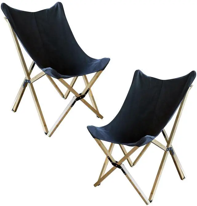 pA classic chair gets a modern redesign with the 2 Piece Amerihome Canvas and Bamboo Butterfly Chair Set. A modern and elegant take on an old favorite, this Sling Chair has a woven canvas cover, that is durable and lightweight. A strong and elegant bamboo frame folds and unfolds, so the only assembly required in to slip-on the cover. The simple design is famous for its functionality, striking style, and portability, and will make an attractive accent chair to the living room, den, basement or bedroom. The fold-up design makes these chairs a great alternative to typical camping chairs, or extra guest seating.