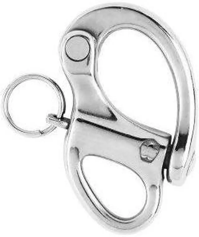 p2" Snap Shackle with Fixed Eye - 50mmulHR Forged snap shackle (Grade 17.4 ph stainless steel) with fixed eye ,The plunger pin is set captive into the hook and cannot become detached,Excellent working and breaking loads,Easy to open by pulling the plunger pin (possibility to attach a lanyard),ulApplications:ulSnap shackle applications with fixed eye,Use for applications where the free rotation is not required,ul !--- cis2:mm5lnZ1k ---p