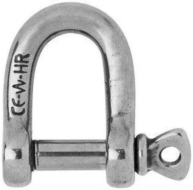 pHR D Shackle - Diameter 2564"ulForged D shackle in HR stainless steel grade (17,4 PH),Outstanding working and breaking load,An HR shackle can be up to 60% more resistant than a shackle in 316L stainless steel,WLL: only for industrial applications (lifting i.e…),CE marking and batch number,ulApplicationsulApplications requesting high loads,Standard applications of the shackle,Attachment applications: blocks, head,Do not use it for mooring applications,ulSpecifications:ulMaterials HR 17.4 PH stainless steel grade,Working load (lb) 5820,WLL (lb) 2640,Breaking load (lb) 13220,Weight (lb) 0.225,A (inch) 1 1964",B (inch) 2532",D diameter (inch) 2564",ul !--- cis2:mm5lnZ1k ---p