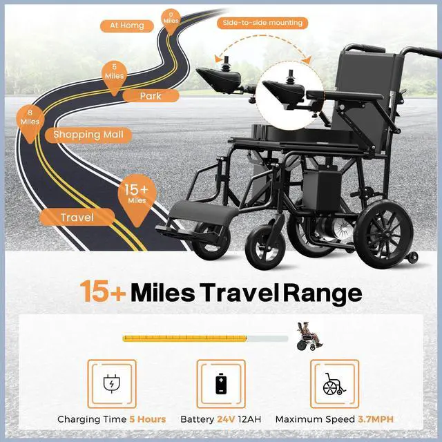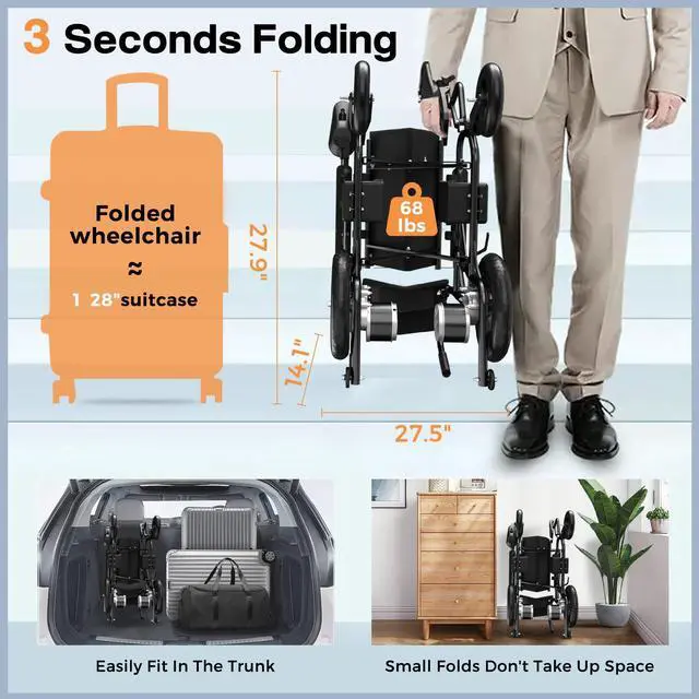 FOLDABLE AND EASY TO CARRY: The portable power wheelchair is sturdy and durable, and can be quickly folded to fit in the trunk of your car for easy travel or transportation