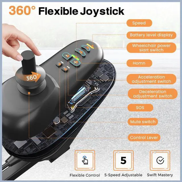 The responsive 360-degree joystick makes maneuvering and braking easy even in tight spaces