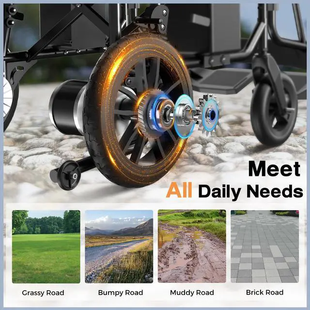 Safe and Durable: the power wheelchair is equipped with handbrake, seat belt and anti-slip device, providing you with multiple safeguards in various scenarios