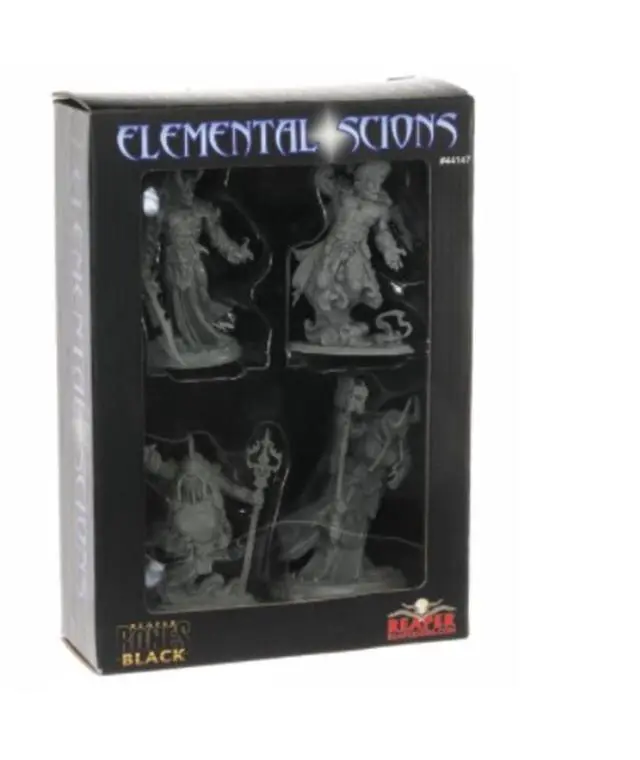 pBorn of the elements - air, earth, fire, and water - these Elemental Scions are the essence of nature incarnate. This Bones Black Boxed Set contains four masterfully sculpted models suitable for painting or playing, right out of the box! brbrbContents: bbr4 Elemental Scion MiniaturesbrbrbMiniatures are supplied unpainted and pre-assembled. bp
