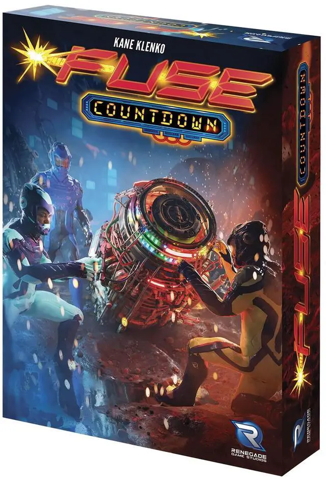 pFUSE: COUTDOWN - All of the fast-paced gameplay from FUSE is back, with a stand-alone expansion! Can be used by itself OR combined with the original game. Still only takes 10 minutes to play! Cooperative, real-times, intense gameplay. Featuring new dice & bomb cards, a new card type (spark cards) and unique player role cards! Each player will have a special player power. The multi-colored dice can fulfill either color. New Cards! Spark Cards - When you cant place a die, instead of rolling it and removing a related die, you draw a Spark card. Its like a mini-bomb card for you to fulfill. You cannot win the game unless all active Spark cards are resolved. New bomb cards using some of the new features/icons. New Fuse Cards featuring multiple colors/numbers (easier to trigger, but you only have to get rid of one die per card), or