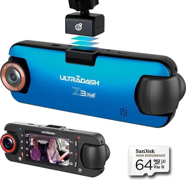 Package Includes: UltraDash Z3+ (Commercial Edition) Dash Camera GPS Magnetic Suction Mount 3M Adhesive Mount Static Side Film 10ft. car charging cable 4ft. data cable Cable Clips User Manual 64GB High Endurance Micro SD card