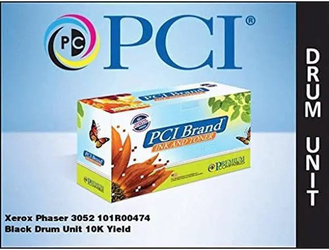 PCI Xerox 101R00474 (101R474) Black Drum Cartridge Unit 10000 Page Yield. 100% compatible with Xerox Phaser 3052 3260 3260DI 3260DNI Xerox WorkCentre 3215 3215NI 3225 3225DNI replacement for XER-101R00474. One Year Factory Direct.