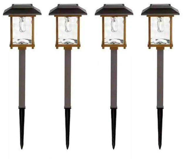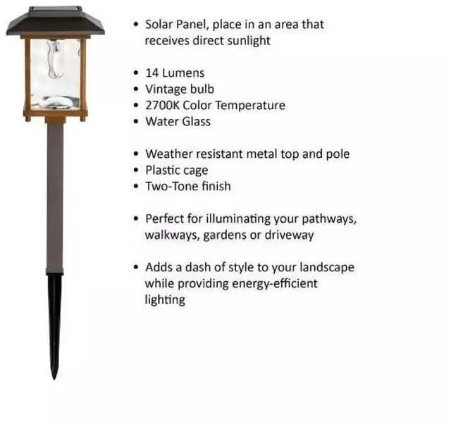 This 2-tone, bronze and gold Solar LED Outdoor Pathway Light features an elegant water glass lens for a beautiful lighting effect on your walkway. The perfect way to enhance your home's landscape, adds charm and elegance while increasing safety during the nighttime-hours. Solar-powered means you can use them anywhere the sun shines. With no wiring necessary and LED bulbs, these solar path lights are easily installed and practically maintenance free.