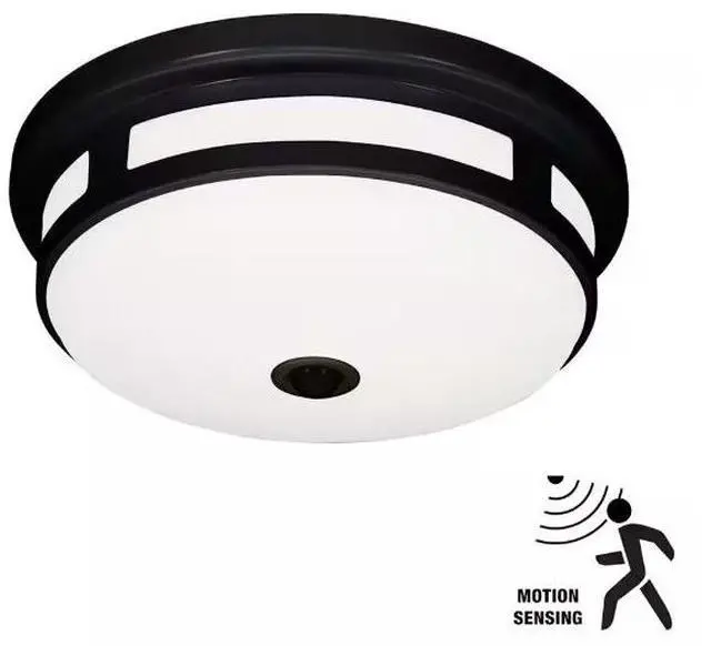 Hampton Bay 11 in. Round Black Exterior Outdoor Motion Sensing LED Ceiling Light 5 Color Temperature Options Wet Rated 830 Lumens # 1007155791 # 564281011