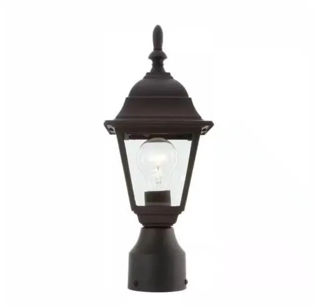 Traditional 1-Light Black outdoor post lantern with Clear Glass Post light uses (1) E26 60-Watt max bulb (not included) Perfect light fixture for your exterior walkways and driveways