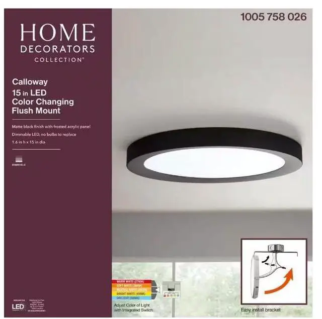 The edgelit technology of the 15 in. Matte Black Ceiling Flushmount has a 90 CRI high color rendering that creates a perfect illumination and makes this fixture completely glare free providing more natural light for your home or office. The long-lasting LED technology provides light output equivalent to 150-Watt of traditional incandescent lighting, while using less than 20% of the energy for year round savings. It features a selectable color temperature feature which allows you to choose your preferred white light color: warm 2700K, soft white 3000K, neutral white 3500K, bright white 4000K, or daylight 5000K. Enjoy a 5-year warranty and a rated life of 45-years or 50,000-hours of continuous use. The ENERGY STAR certified light source is maintenance free with no bulbs to change. You'll enjoy a light with a sleek, low profile and soft industrial design and it's even easy to install with a provided bracket and only requires 1-person to install.