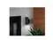 Modern outdoor wall sconce for porch, patio or garage Black finish with frosted glass Integrated LED produces 360 Lumens and 60-Watt equivalence