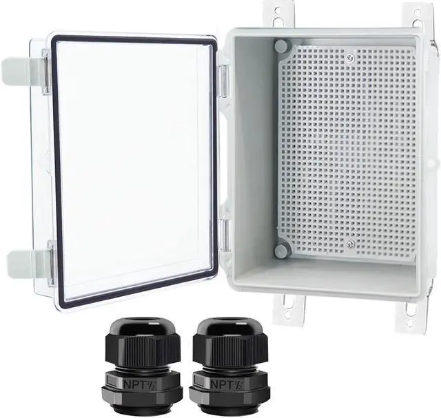 Money Saving Junction Box Sets The junction box includes a mounting plate, 4 stainless steel Wall Brackets, and 2 cable glands. The ABS project boxes can be drilled and shaped easily without cracking, so its almost suitable for your all DIY projects.