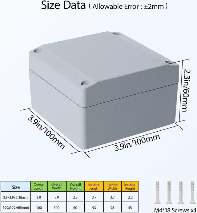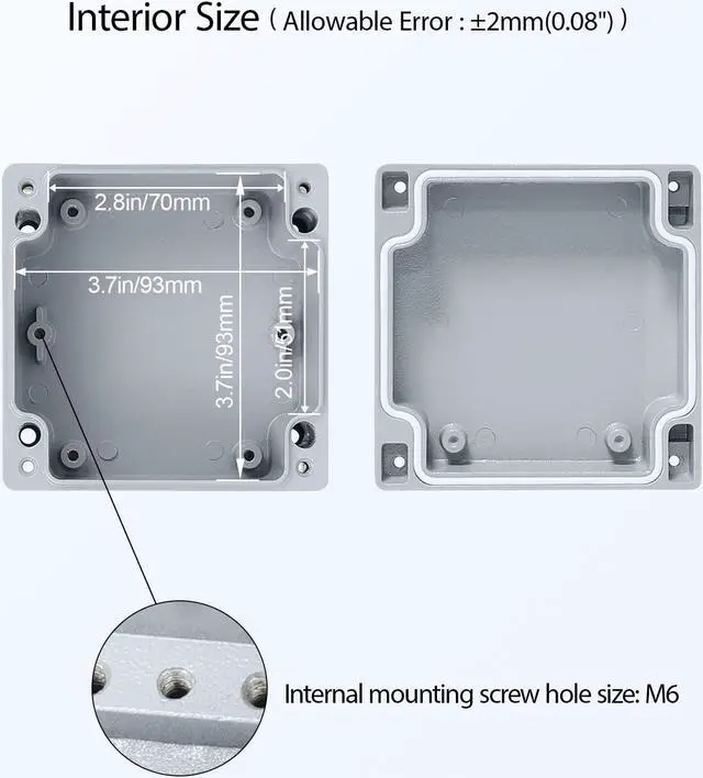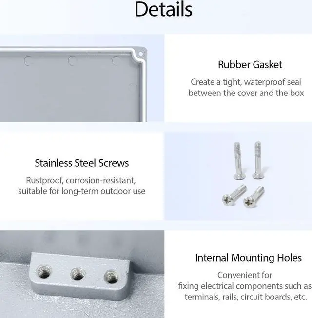 [WATERPROOF] Electrical box is IP67 waterproof rated,, ensuring that the electrical components inside are safeguarded from moisture, rain, and other external elements. Seals with rubber gasket to offer ideal protection for electronics.