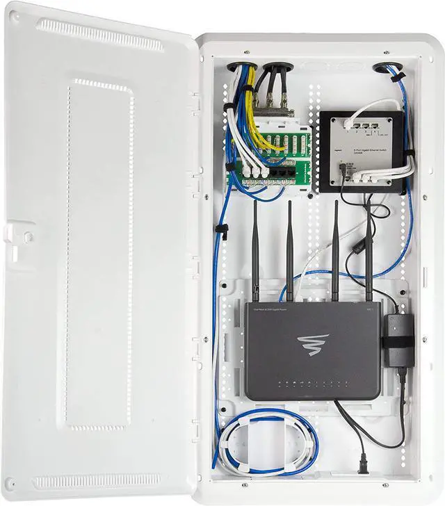 Legrand - On-Q 30 Inch Media Enclosure, WiFi Electrical Box, Cable Management Box for Distribution of Networking Service, Recessed Media Box Lets Signal Through, White, ENP3050NA