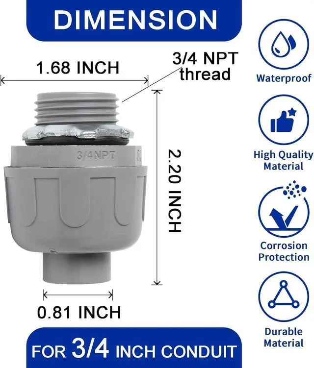 • Size---3/4 inch conduit fitting kit is used for 3/4 inch conduit.