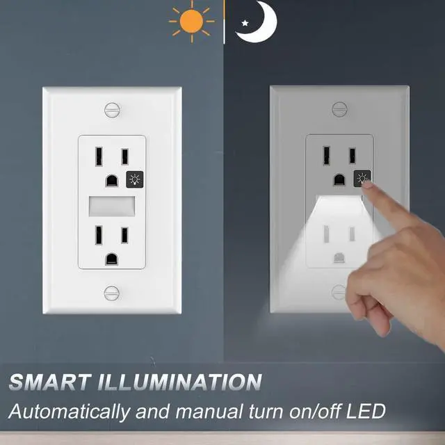 Not Only A Wall Outlet -- Elegantly blends the features of a wall outlet and night light together.