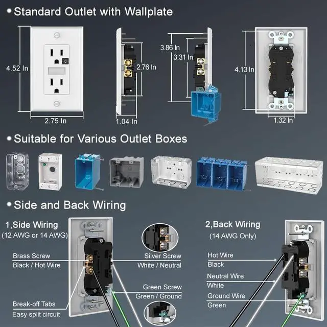 Easy Installation -- Shallow body design fits most junction boxes; push-in and side wire.