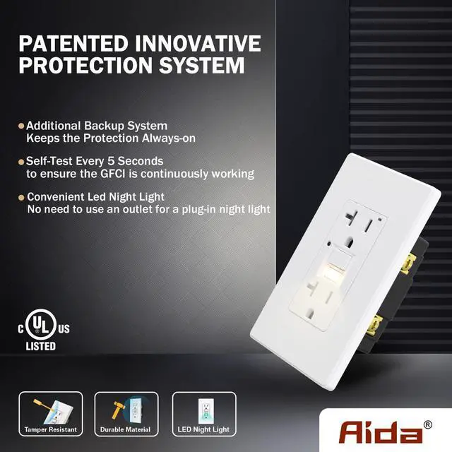 Safe EnoughStrictly tested as per or exceeds UL943 & UL498 requirements. Innovated Reset-Disable System ensures the GFCI cannot be reset once it reaches the " end of life". Constructed with premium high-impact resistant thermoplastic materials and rational structure design, ensures superior strength and durability.