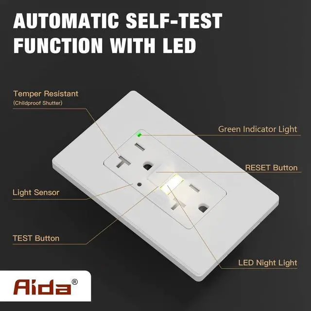 Self-Test Every 5 SecondsThe GFCI outlet automatically conducts self-test (auto-monitor) every 5 seconds to ensure the GFCI is continually working to protect people from electrocution, which exceeds the UL standards of self-test frequency of 3 hours.
