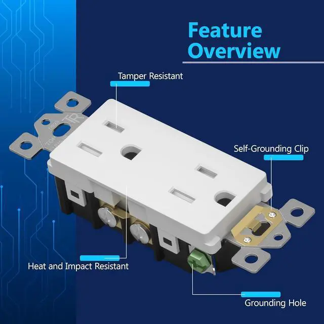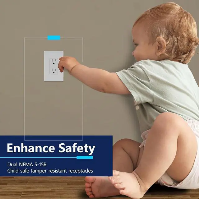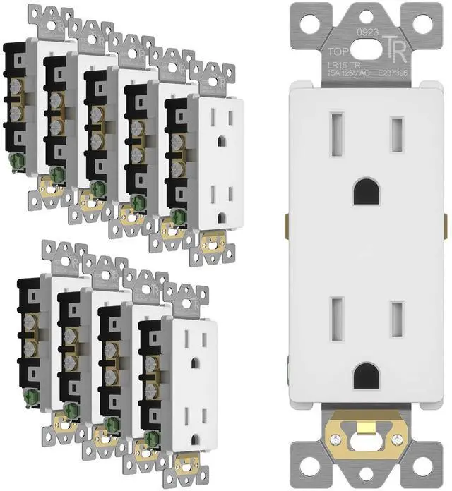 Safe and Reliable - LIDER electrical outlets are designed with safety in mind, featuring child-safe tamper-resistant technology that prevents unwanted objects from being inserted. Complies with 2017 NEC Article 406.12; other specs: 15A 125VAC, 5-15R; Polycarbonate Thermoplastic construction; flammability UL94, V2 Rating; UL Listed. Matching wall plates are sold separately. Enjoy a 1-year warranty for added peace of mind. 10-pack listing.