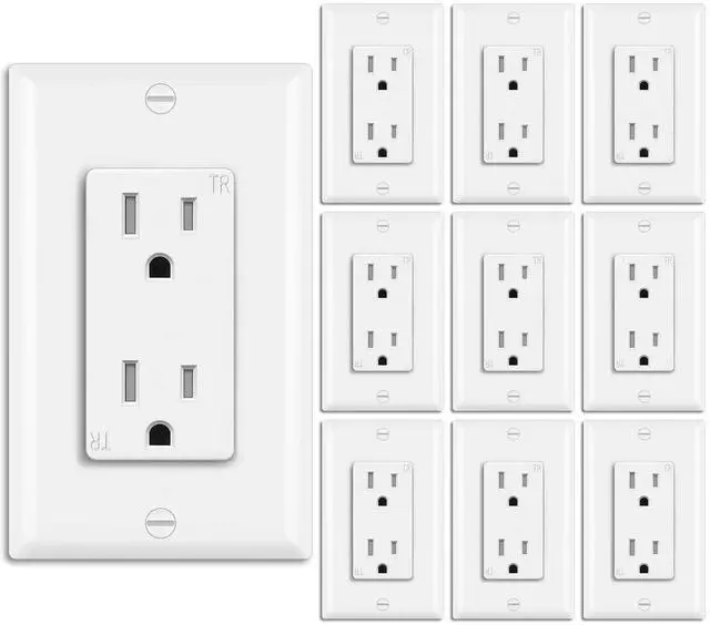 Standard Electrical Outlet: 15A/125V/1875W, gloss white color, UL/cUL Listed. Decorator wallplates and screws included