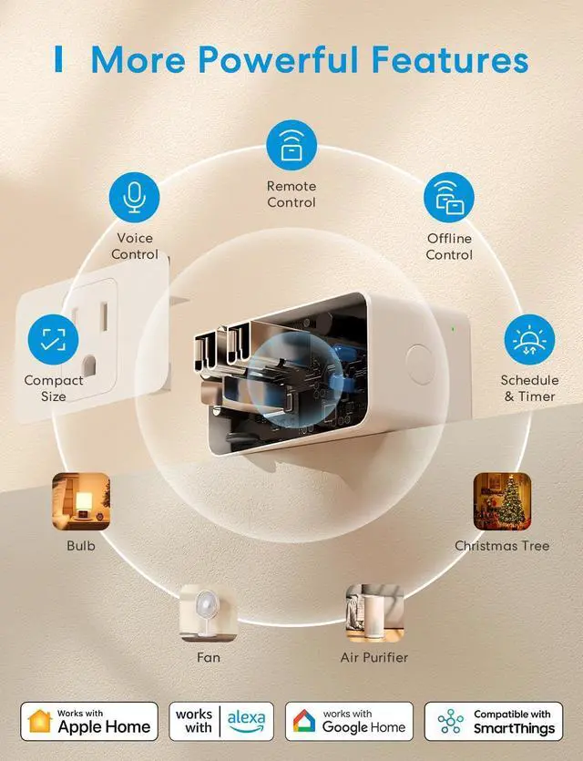 Voice Control: You can control your devices hands free, just give voice commands to turn on/off the connected devices. Compatible with Apple HomeKit, Apple Watch, Siri, Carplay, Alexa, Google Assistant.