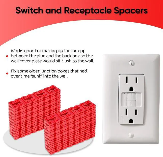 RIGHT SIZE These red plastic electrical outlet spacers shims individually measure 0.78 x 0.78 inch/ 2x 2 cm, and will not interfere with proper use of the switch.