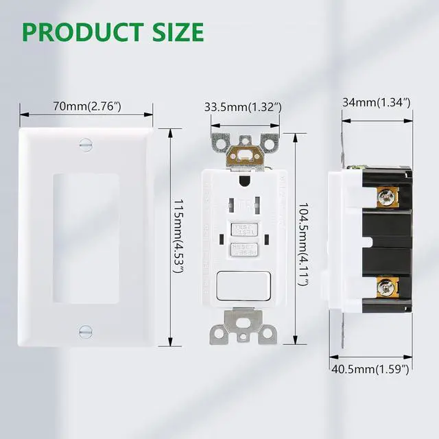 Our GFCI receptacle is suitable for 12 or 14AWG wires of side wire and back wire, which can be easily installed in any electrical box, and can prevent reverse wiring of line load, and the product will not power on when wiring is wrong.