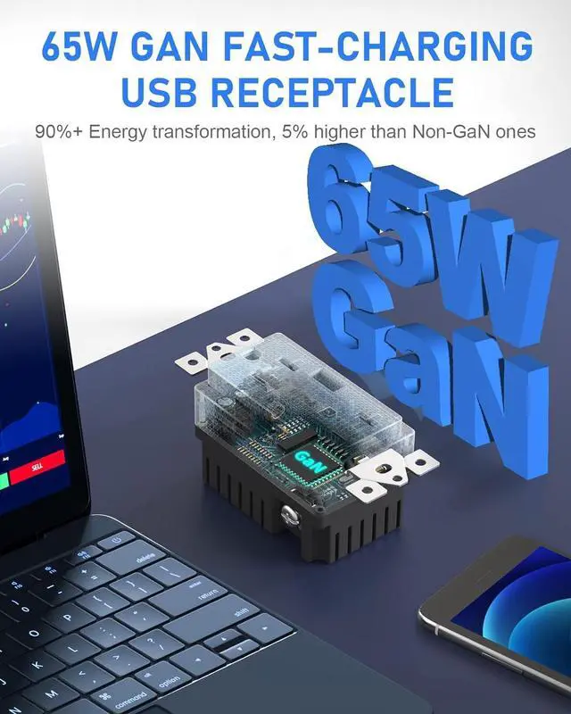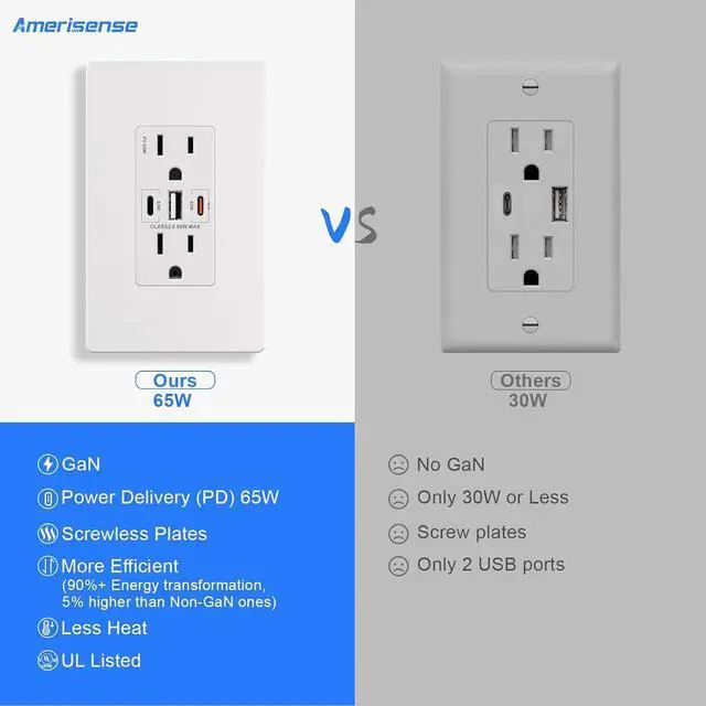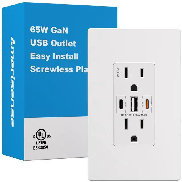 The Best USB Receptacle You Need: Connect a single device to get a 65W max charge--power up a 2021 MacBook Pro 13 at full speed! Amerisense GaN 65W USB outlet provide fast charge to your USB-C laptop, phone and tablet. Say goodbye to your old receptacle! (The USB-C port will be 45W max when you use USB-C and USB-A simultaneously).