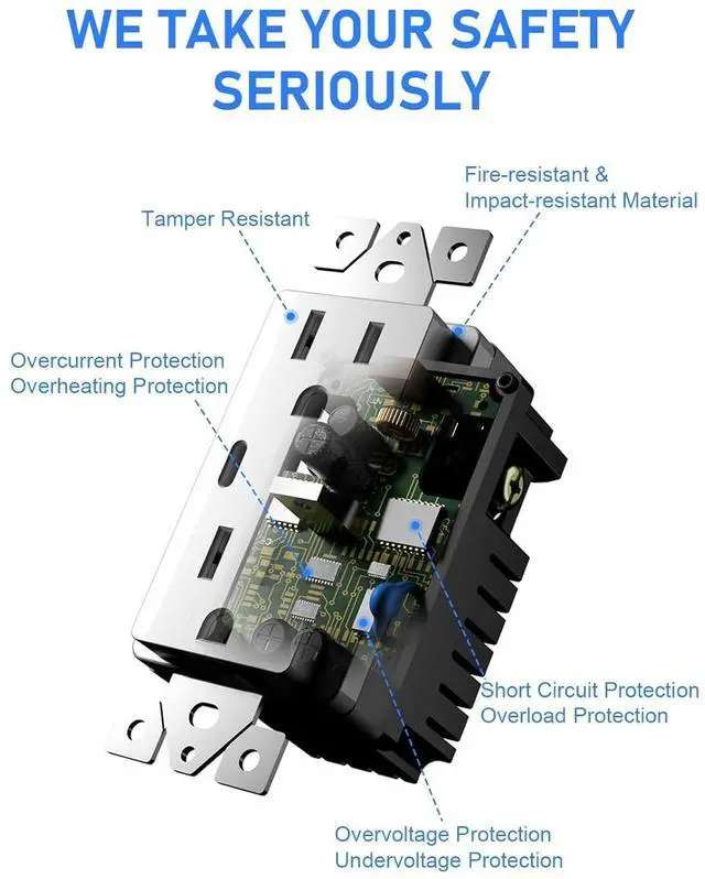 Safety & Multi-Protection: The PC (V0) fire retardant material of product surface & multiple protection inside protects your devices against over current, short circuit and over voltage, owning UL safety certification. 15A TR Receptacle increases safety level by preventing unwanted objects into the outlet.