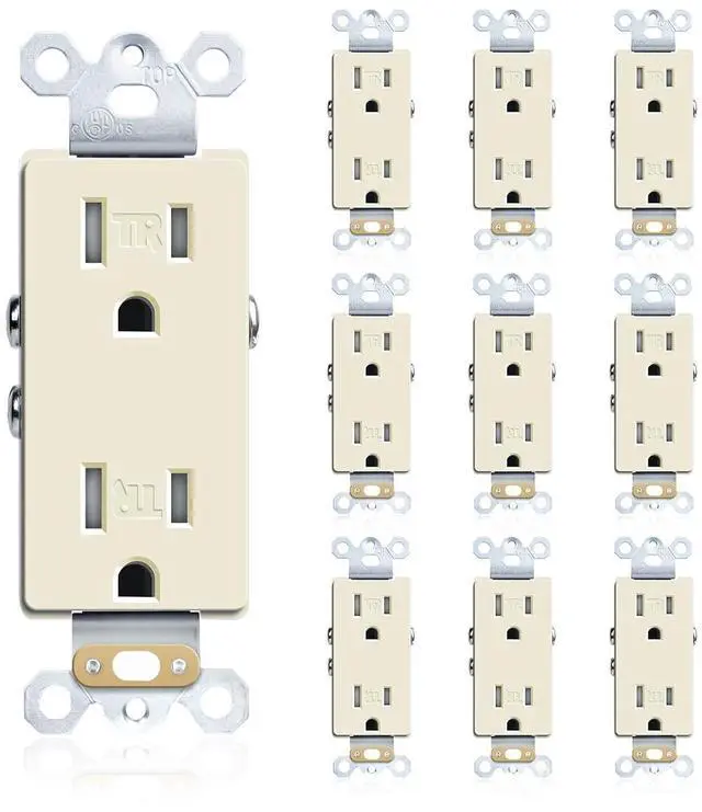 Specification: 125V, 5-15R, TR, self-grounding, 2-pole, 3-Wire. UL94, V2 Rating, UL Listed. Complies with 2017 NEC Article 406.12. 1-year warranty