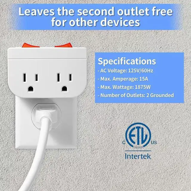 ETL listed 15 Amps, 125V, 60 Hz, 1875 Watts, compatible with most of the electrical devices such as garage lights/fan/air fryer/toaster/coffee machine etc