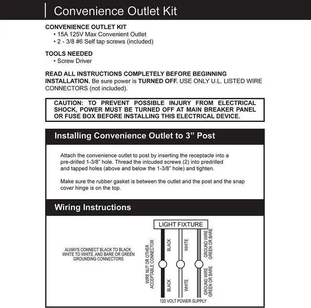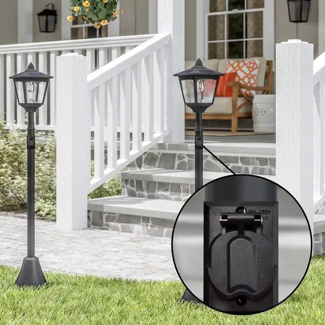 MORE BEAUTY: This electrical outlet for outdoor lamp post use black plastic cover, blend with your light pole perfectly