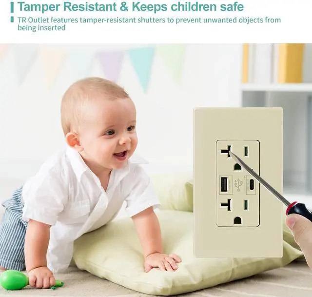 Easy Installation: Upgrade your outlet effortlessly. The Micmi TYPE A+C Wall Outlet comes with a wall plate included, making installation a breeze. It' s UL Listed for safety and reliability