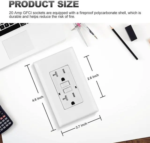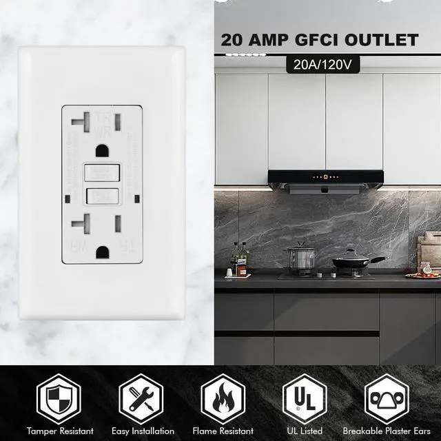 Tamper-resistant: The GFCI outlet is designed to be tamper-resistant, which helps prevent unauthorized access to the electrical outlet. This is a crucial feature for areas where safety is a priority, such as kitchens, bathrooms, and outdoor areas.