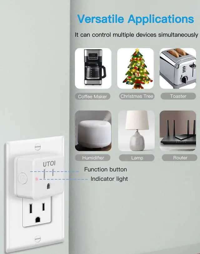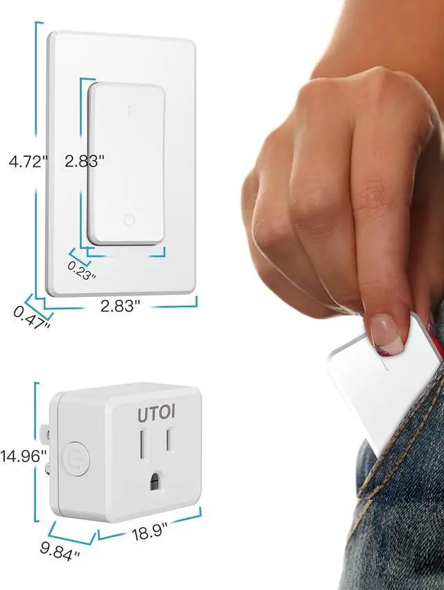 Wireless Light Switch with Wall Holder - The UTOI remote outlet features an RF wireless outlet switch with a wall-mounted design, it seamlessly transitions between a fixed wall switch and a handy remote, and offers versatile control options for your lamps and household appliances