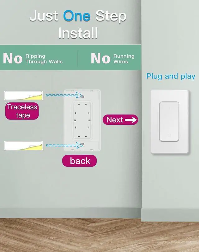 Easy to Use - No wiring or WiFi needed! Simply plug and play to instantly control lights and appliances with the included remote outlet switch. The outlet with remote comes pre-paired and ready to use out of the box, convenient even for seniors and those with limited mobility