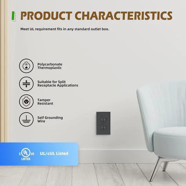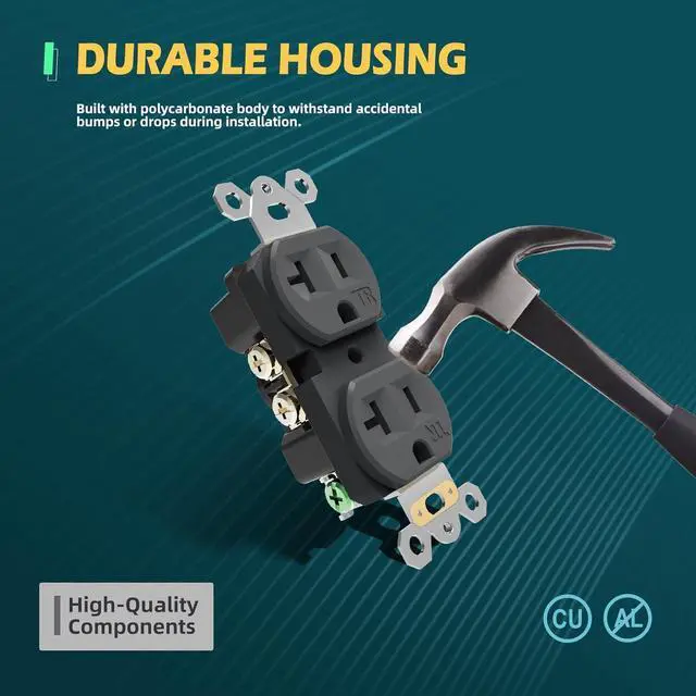 Electric wall outlet come equipped with tamper-resistant mechanism, providing an added layer of protection against accidental electric shocks and foreign object insertion. Complies with 2017 NEC Article 406.12 for tamper-resistant receptacles