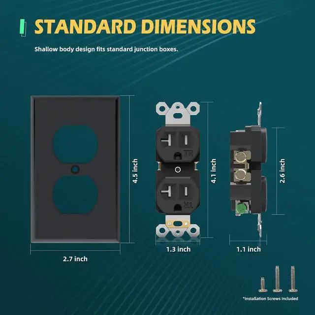 The duplex receptacle is the perfect solution to repairs or replacements, shallow body design fits standard junction boxes, upgrading your bedroom, kitchen, office, workshop or other space is a breeze